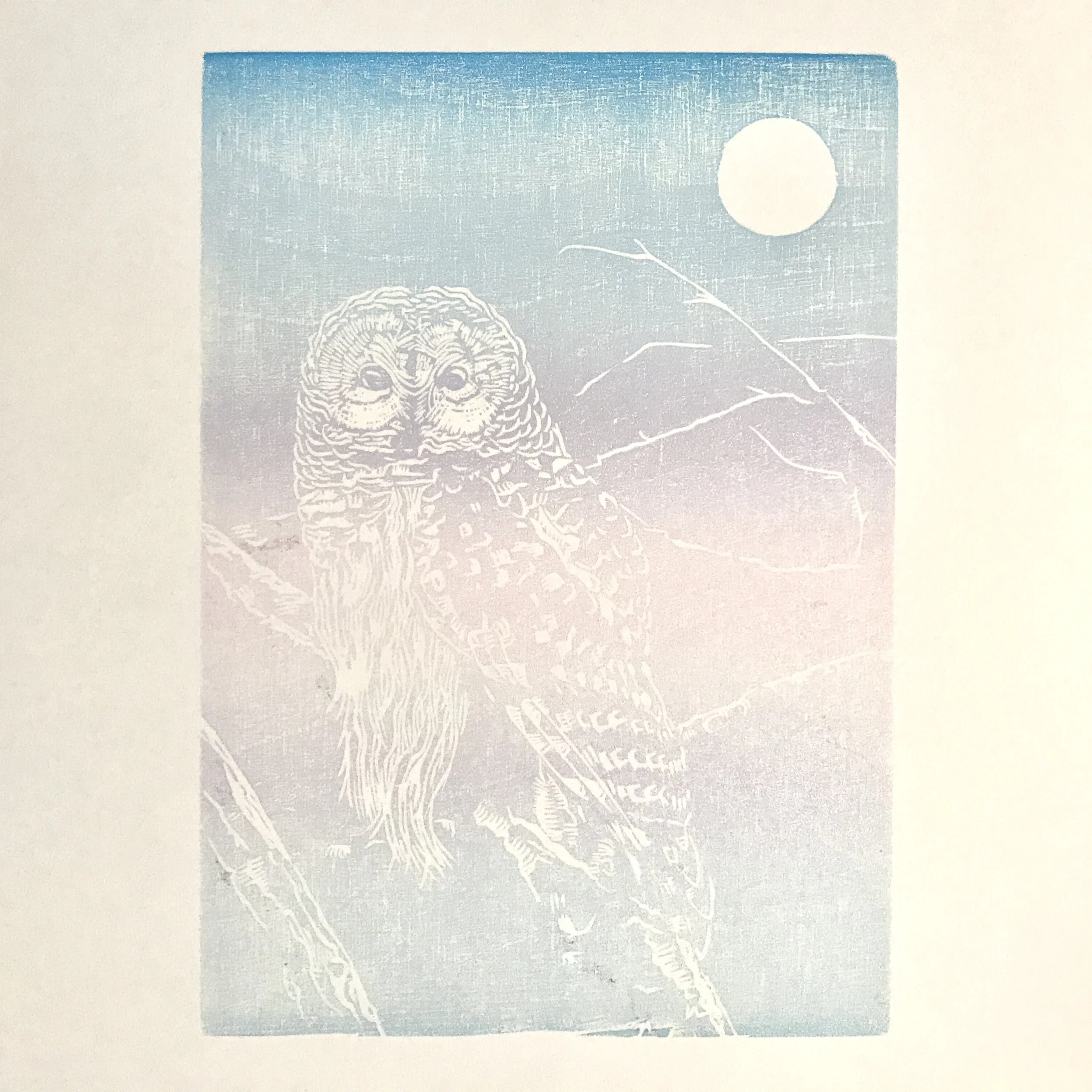 For most of my woodcut prints, I have used Baltic birch plywood printed on either my etching press of my Showcard proofing press.