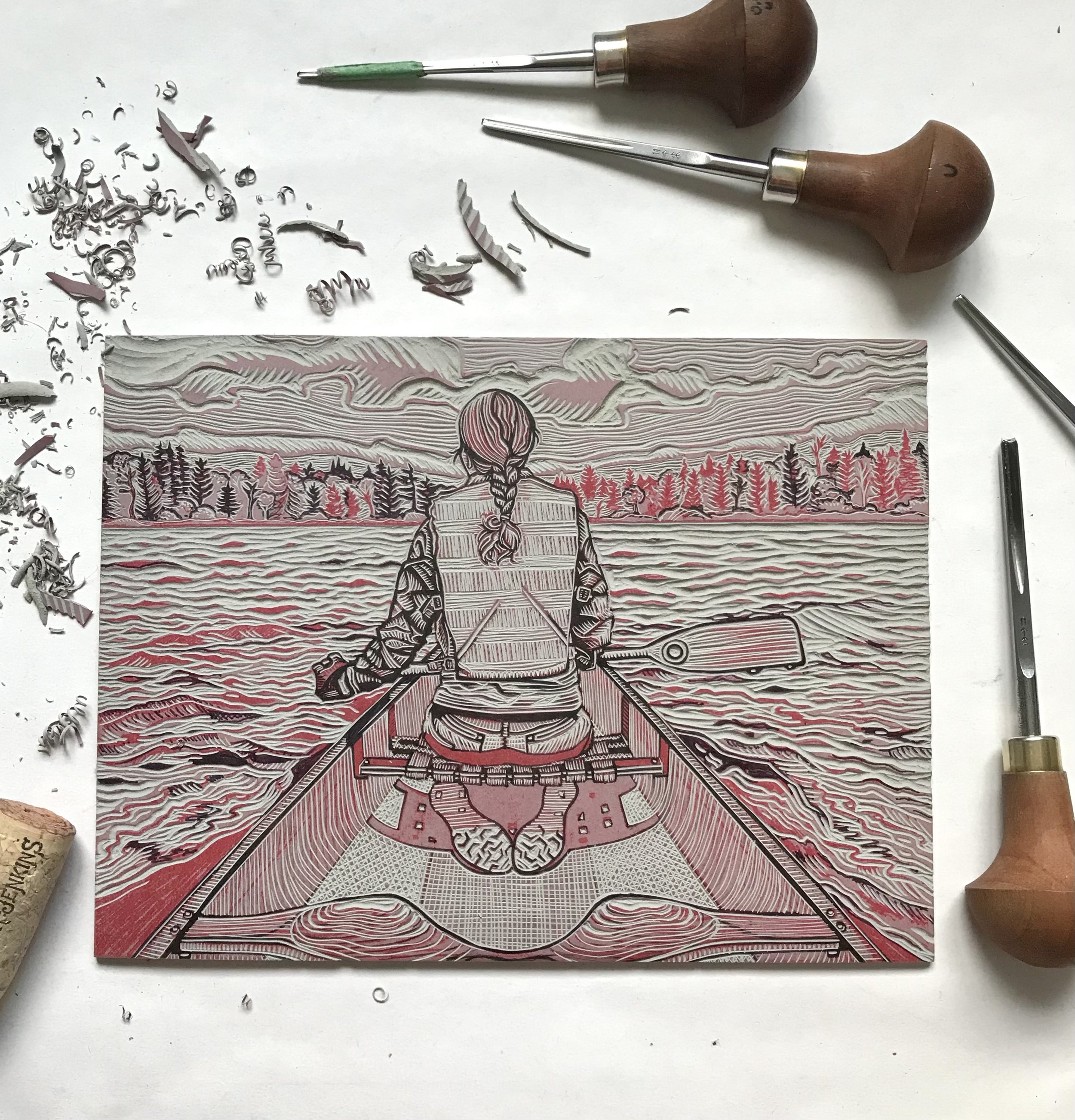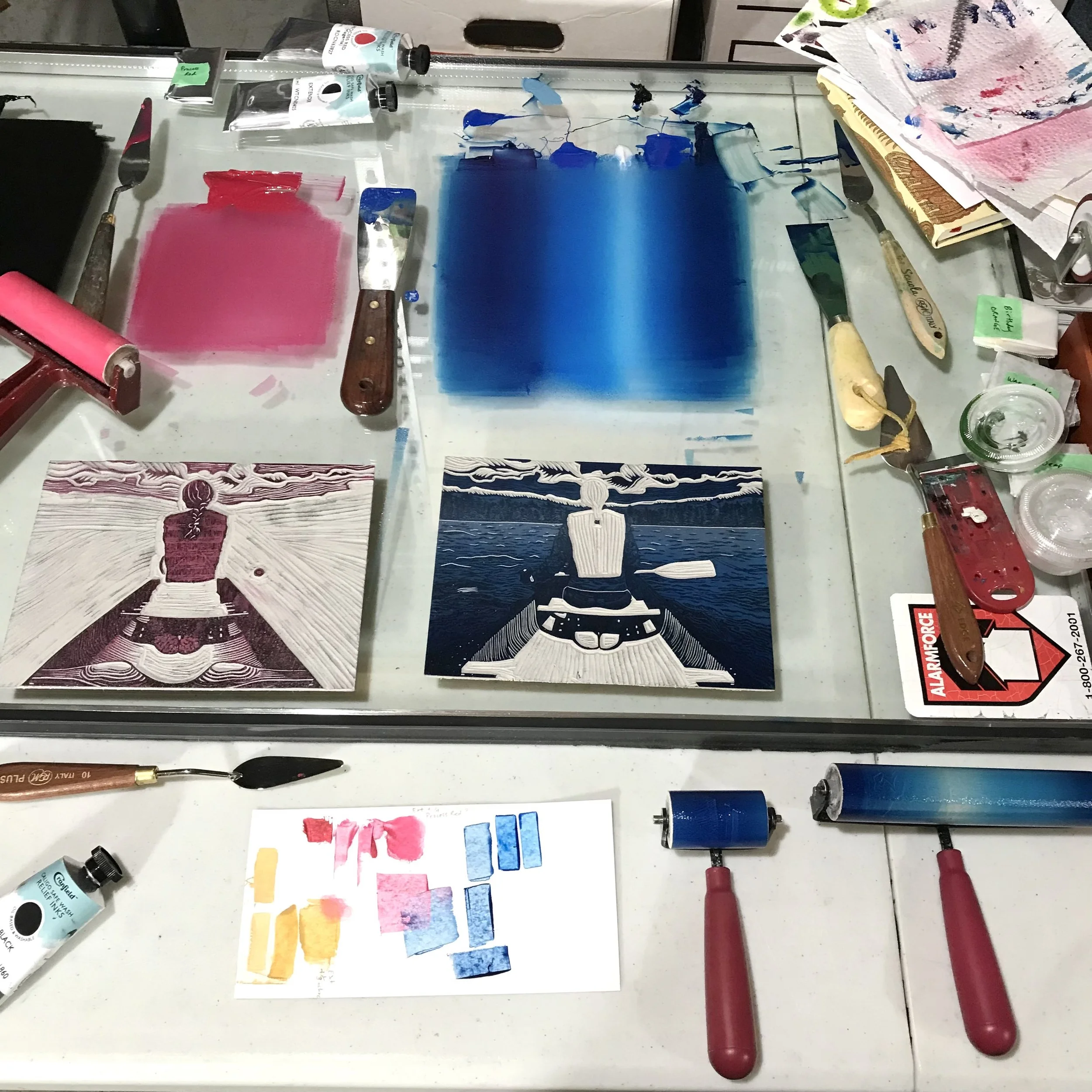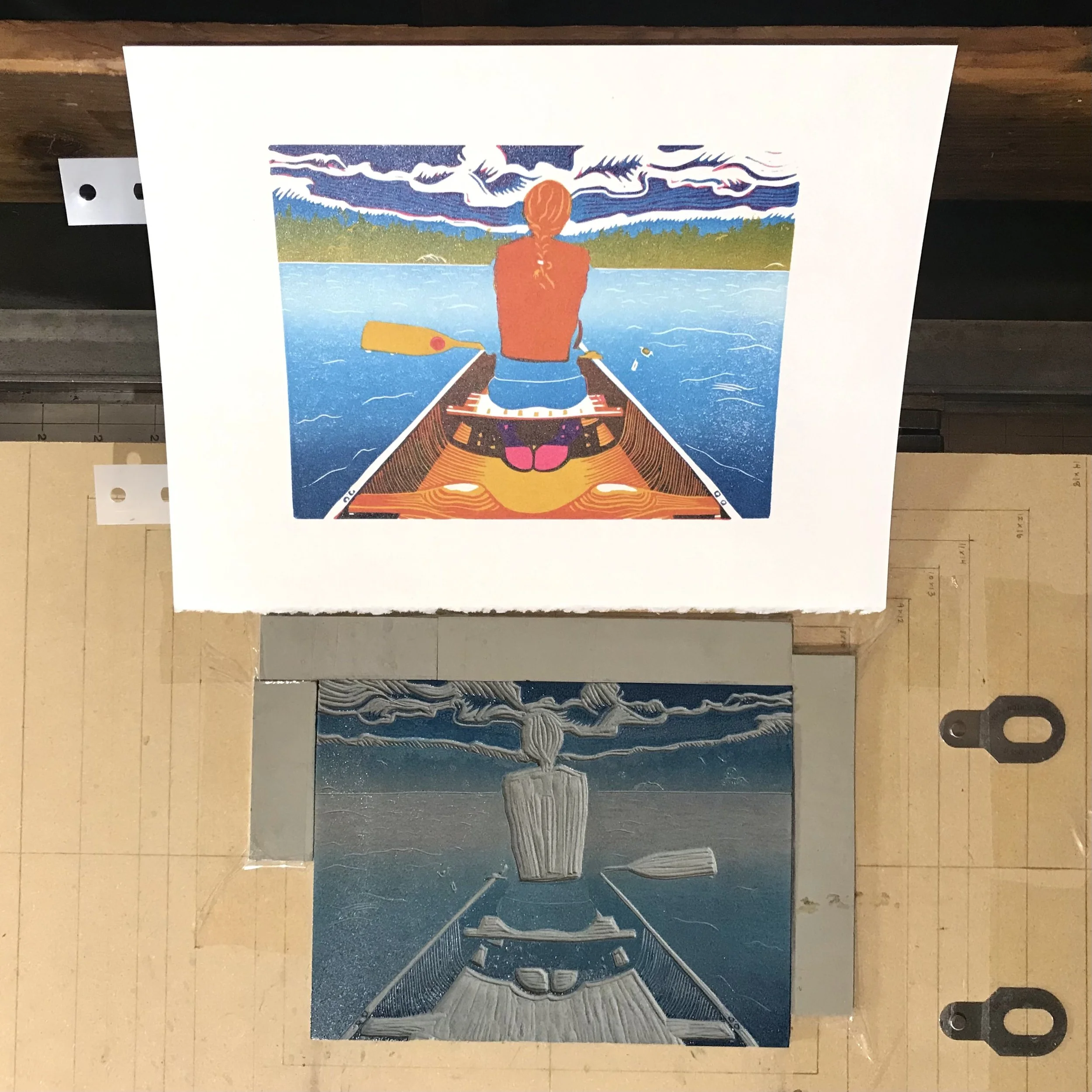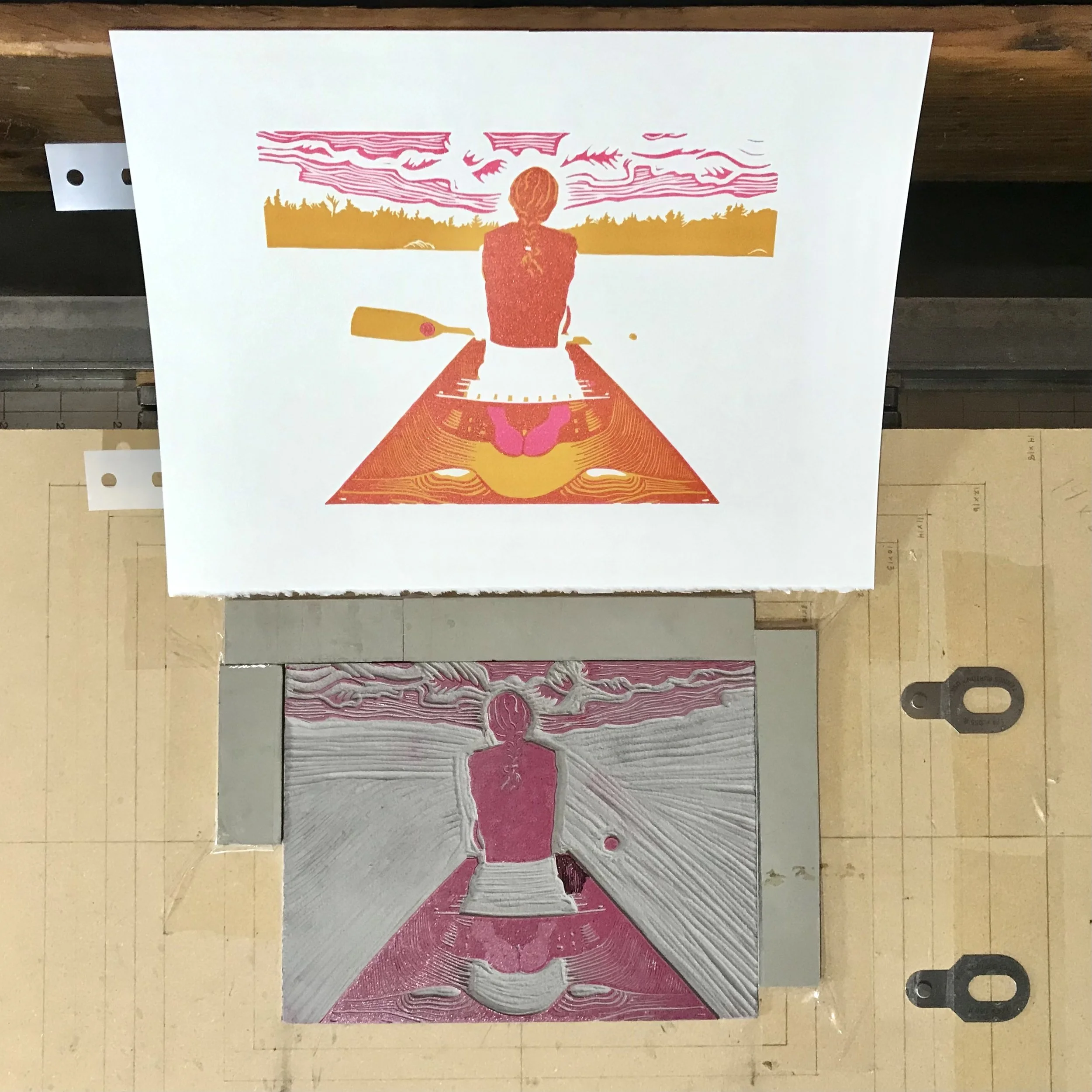 Explore the multi-block method of printmaking to create multi-colour prints on paper. Discover the connection between the traditional Japanese process of mokuhanga woodcut and the modern Western technique of multi-block linocut printmaking. Experiment with a variety of carving techniques, application of oil-based inks, and printing on paper using a book press. Learn to plan for overlapping design elements to create new colours using process pigments and transparent extender. Over the two days you’ll carve two linocut blocks and use simple registration techniques to produce a small edition of colourful prints.